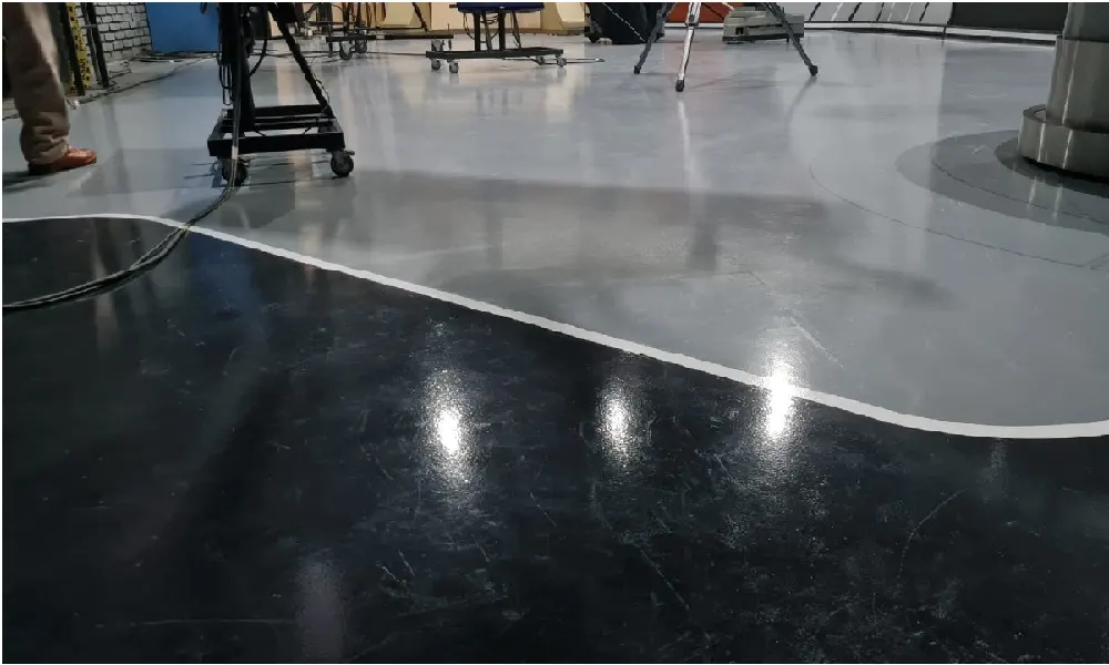 Aplicación de Esquema Epoxico para Estudio Canal 9 La Revista, capa de acabado con color especial